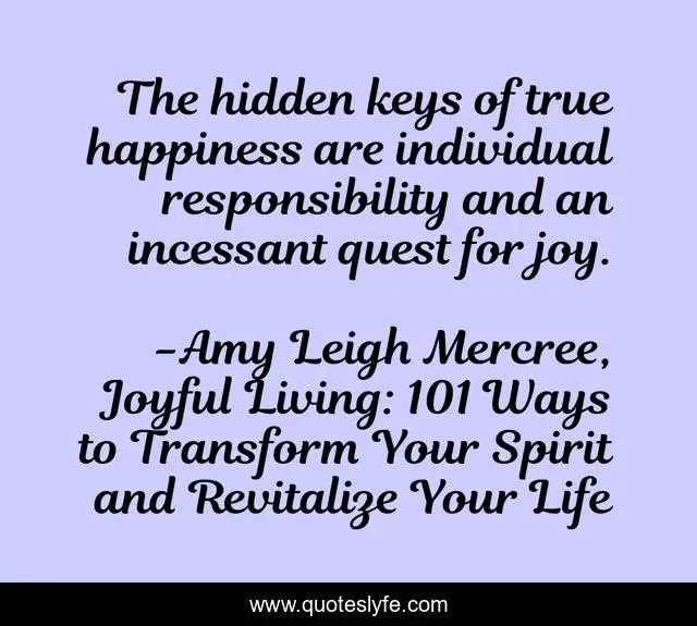 "Amy Leigh Mercree, Joyful Living: 101 Ways to Transform Your Spirit and Revitalize Your Life Quotes." Quoteslyfe.com, 2025. Fri. 05 Dec. 2025. <https://www.quoteslyfe.com/quote/The-hidden-keys-of-true-happiness-are-15602>.