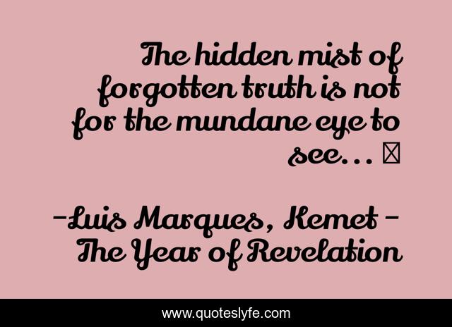 "Luis Marques, Kemet - The Year of Revelation Quotes." Quoteslyfe.com, 2025. Sat. 06 Dec. 2025. <https://www.quoteslyfe.com/quote/The-hidden-mist-of-forgotten-truth-is-134046>.