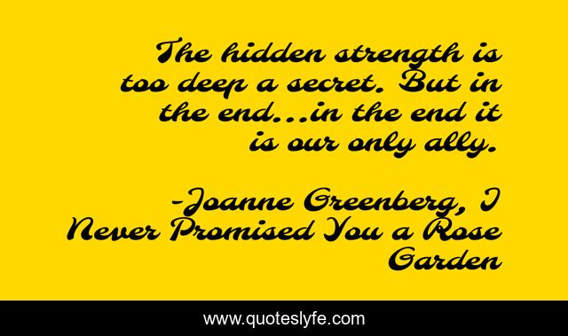 This page presents the quote "The hidden strength is too deep a secret. But in the end...in the end it is our only ally.". Author of this quote is Joanne Greenberg, I Never Promised You a Rose Garden. .