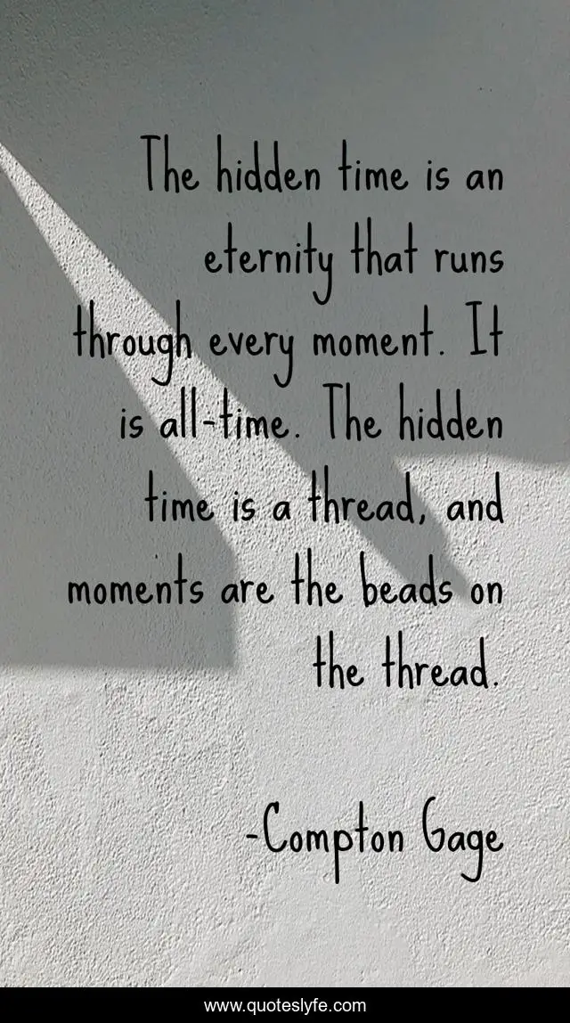 "Compton Gage Quotes." Quoteslyfe.com, 2025. Sat. 06 Dec. 2025. <https://www.quoteslyfe.com/quote/The-hidden-time-is-an-eternity-that-20434>.