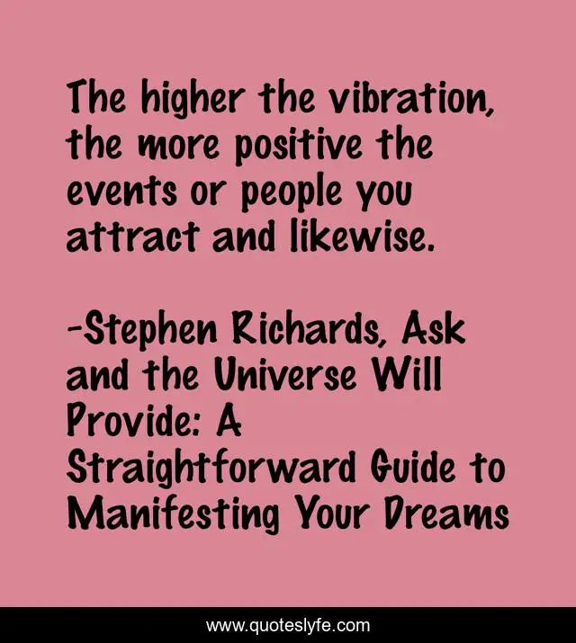 "Stephen Richards, Ask and the Universe Will Provide: A Straightforward Guide to Manifesting Your Dreams Quotes." Quoteslyfe.com, 2025. Sat. 06 Dec. 2025. <https://www.quoteslyfe.com/quote/The-higher-the-vibration-the-more-positive-44812>.