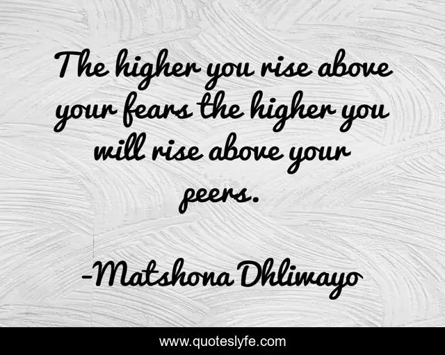 "Matshona Dhliwayo Quotes." Quoteslyfe.com, 2025. Mon. 08 Dec. 2025. <https://www.quoteslyfe.com/quote/The-higher-you-rise-above-your-fears-83461>.