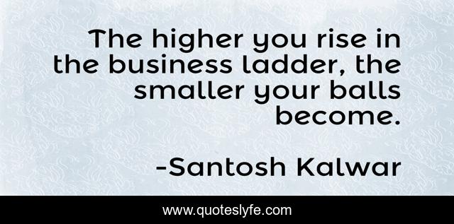 This page presents the quote "The higher you rise in the business ladder, the smaller your balls become.". Author of this quote is Santosh Kalwar. This quote is about funny, comedy, business, jokes,.