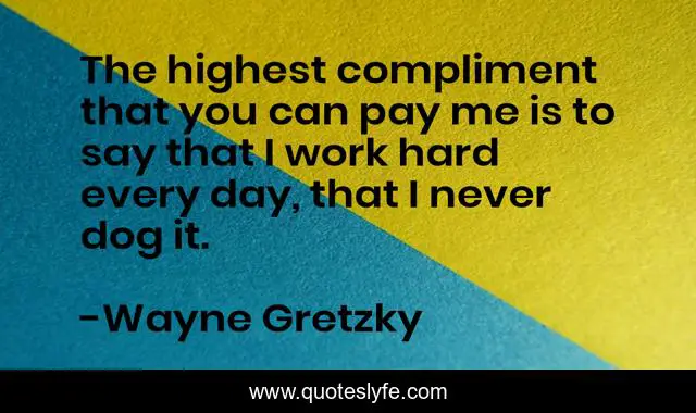 This page presents the quote "The highest compliment that you can pay me is to say that I work hard every day, that I never dog it.". Author of this quote is Wayne Gretzky. This quote is about dog, day, work hard,.