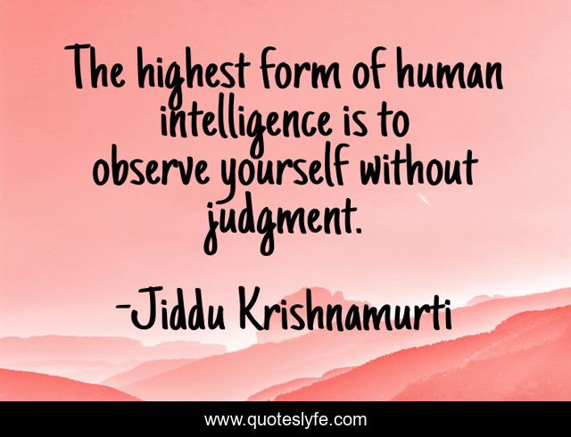 This page presents the quote "The highest form of human intelligence is to observe yourself without judgment.". Author of this quote is Jiddu Krishnamurti. This quote is about judgement, intelligence, observe,.