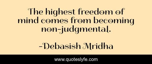 This page presents the quote "The highest freedom of mind comes from becoming non-judgmental.". Author of this quote is Debasish Mridha. This quote is about freedom-of-the-mind, non-judgmental, freedom, philosophy, debasish-mridha, quotes, inspirational, enthusiasm, debasish-mridha-m-d,.