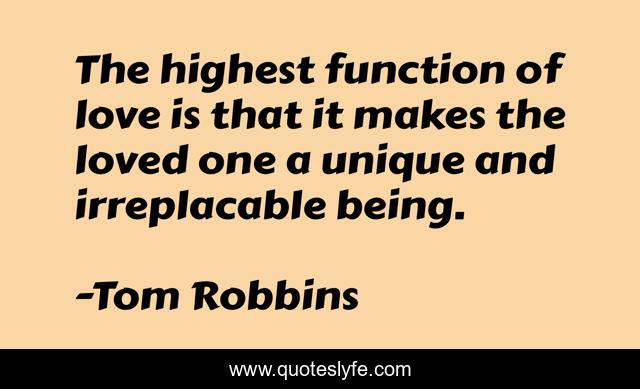 This page presents the quote "The highest function of love is that it makes the loved one a unique and irreplacable being.". Author of this quote is Tom Robbins. This quote is about loved, unique, love is,.