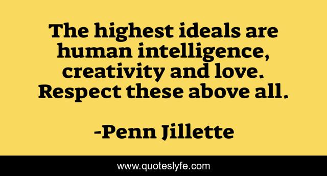 This page presents the quote "The highest ideals are human intelligence, creativity and love. Respect these above all.". Author of this quote is Penn Jillette. This quote is about love, creativity, affection,.