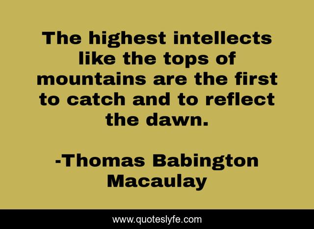 This page presents the quote "The highest intellects like the tops of mountains are the first to catch and to reflect the dawn.". Author of this quote is Thomas Babington Macaulay. .