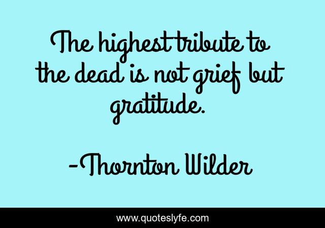 This page presents the quote "The highest tribute to the dead is not grief but gratitude.". Author of this quote is Thornton Wilder. This quote is about gratitude, epitaph,.