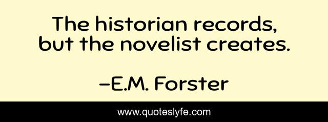 "E.M. Forster Quotes." Quoteslyfe.com, 2025. Sun. 07 Dec. 2025. <https://www.quoteslyfe.com/quote/The-historian-records-but-the-novelist-creates-28219>.