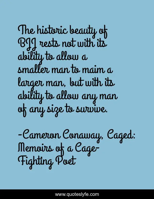 "Cameron Conaway, Caged: Memoirs of a Cage-Fighting Poet Quotes." Quoteslyfe.com, 2025. Sat. 06 Dec. 2025. <https://www.quoteslyfe.com/quote/The-historic-beauty-of-BJJ-rests-not-196037>.