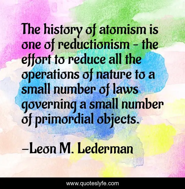 "Leon M. Lederman Quotes." Quoteslyfe.com, 2025. Sun. 07 Dec. 2025. <https://www.quoteslyfe.com/quote/The-history-of-atomism-is-one-of-242036>.