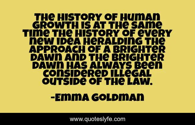 This page presents the quote "The history of human growth is at the same time the history of every new idea heralding the approach of a brighter dawn and the brighter dawn has always been considered illegal outside of the law.". Author of this quote is Emma Goldman. .