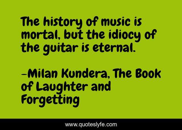 This page presents the quote "The history of music is mortal, but the idiocy of the guitar is eternal.". Author of this quote is Milan Kundera, The Book of Laughter and Forgetting. This quote is about guitar, music,.