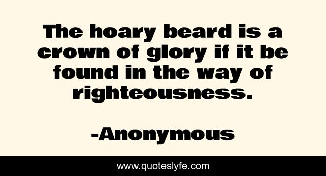 This page presents the quote "The hoary beard is a crown of glory if it be found in the way of righteousness.". Author of this quote is Anonymous. .