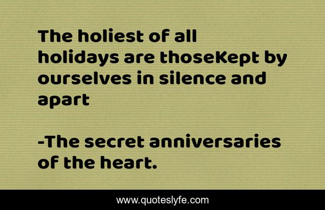 "The secret anniversaries of the heart. Quotes." Quoteslyfe.com, 2025. Fri. 05 Dec. 2025. <https://www.quoteslyfe.com/quote/The-holiest-of-all-holidays-are-thoseKept-80864>.