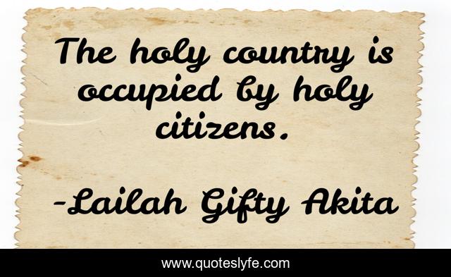 This page presents the quote "The holy country is occupied by holy citizens.". Author of this quote is Lailah Gifty Akita. This quote is about spiritual, citizens, holy, humanity-advice, motivational, confidence, christianity, optimistic, country,.