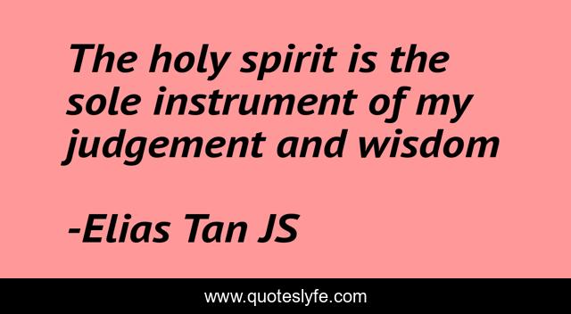 This page presents the quote "The holy spirit is the sole instrument of my judgement and wisdom". Author of this quote is Elias Tan JS. This quote is about god, wisdom,.