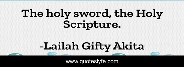 This page presents the quote "The holy sword, the Holy Scripture.". Author of this quote is Lailah Gifty Akita. This quote is about faith, holy-scripture, christian, bible-study, holy-bible, inspirng, sword,.