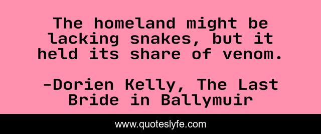 "Dorien Kelly, The Last Bride in Ballymuir Quotes." Quoteslyfe.com, 2025. Mon. 08 Dec. 2025. <https://www.quoteslyfe.com/quote/The-homeland-might-be-lacking-snakes-but-255352>.