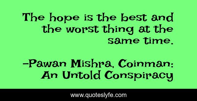 "Pawan Mishra, Coinman: An Untold Conspiracy Quotes." Quoteslyfe.com, 2025. Sun. 07 Dec. 2025. <https://www.quoteslyfe.com/quote/The-hope-is-the-best-and-the-253295>.