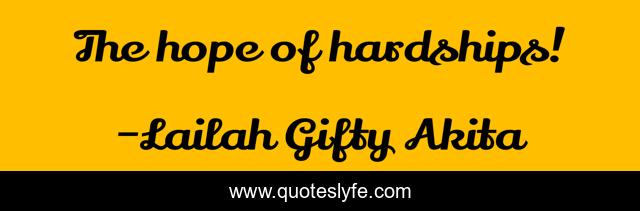 This page presents the quote "The hope of hardships!". Author of this quote is Lailah Gifty Akita. This quote is about hardship, hope, inspiration,.