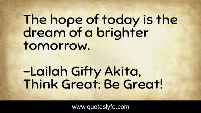 "Lailah Gifty Akita, Think Great: Be Great! Quotes." Quoteslyfe.com, 2025. Mon. 08 Dec. 2025. <https://www.quoteslyfe.com/quote/The-hope-of-today-is-the-dream-208371>.