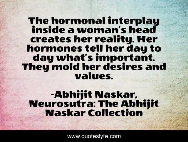 "Abhijit Naskar, Neurosutra: The Abhijit Naskar Collection Quotes." Quoteslyfe.com, 2025. Mon. 08 Dec. 2025. <https://www.quoteslyfe.com/quote/The-hormonal-interplay-inside-a-woman-s-177246>.