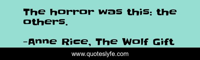 "Anne Rice, The Wolf Gift Quotes." Quoteslyfe.com, 2025. Sat. 06 Dec. 2025. <https://www.quoteslyfe.com/quote/The-horror-was-this-the-others-156317>.