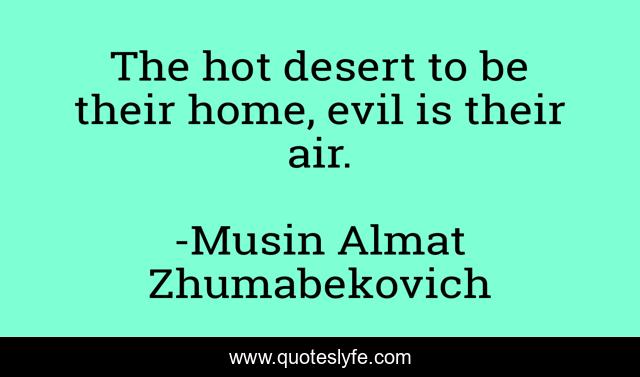 This page presents the quote "The hot desert to be their home, evil is their air.". Author of this quote is Musin Almat Zhumabekovich. .