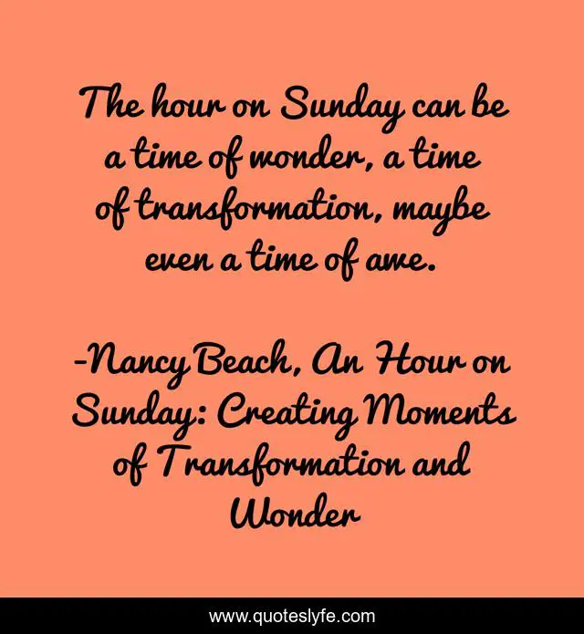 "Nancy Beach, An Hour on Sunday: Creating Moments of Transformation and Wonder Quotes." Quoteslyfe.com, 2025. Fri. 05 Dec. 2025. <https://www.quoteslyfe.com/quote/The-hour-on-Sunday-can-be-a-169095>.