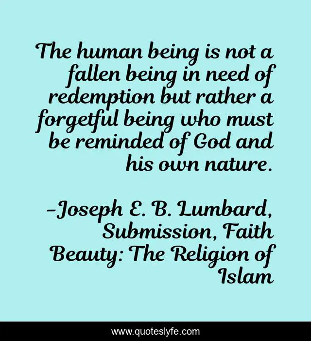 "Joseph E. B. Lumbard, Submission, Faith Beauty: The Religion of Islam Quotes." Quoteslyfe.com, 2025. Fri. 05 Dec. 2025. <https://www.quoteslyfe.com/quote/The-human-being-is-not-a-fallen-187699>.