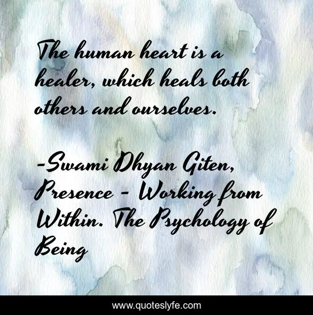 "Swami Dhyan Giten, Presence - Working from Within. The Psychology of Being Quotes." Quoteslyfe.com, 2025. Mon. 08 Dec. 2025. <https://www.quoteslyfe.com/quote/The-human-heart-is-a-healer-which-118189>.