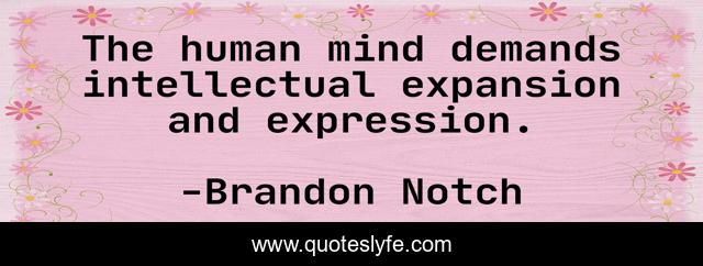 This page presents the quote "The human mind demands intellectual expansion and expression.". Author of this quote is Brandon Notch. This quote is about intelligence, mind-body-spirit, intellectual,.