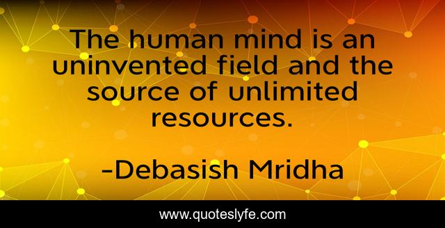 This page presents the quote "The human mind is an uninvented field and the source of unlimited resources.". Author of this quote is Debasish Mridha. This quote is about life, love, knowledge, inspirational, intelligence, philosophy, wisdom, quotes, affection,.