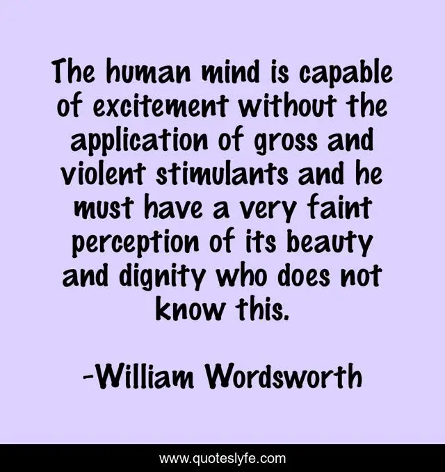 This page presents the quote "The human mind is capable of excitement without the application of gross and violent stimulants and he must have a very faint perception of its beauty and dignity who does not know this.". Author of this quote is William Wordsworth. This quote is about perception, mind,.
