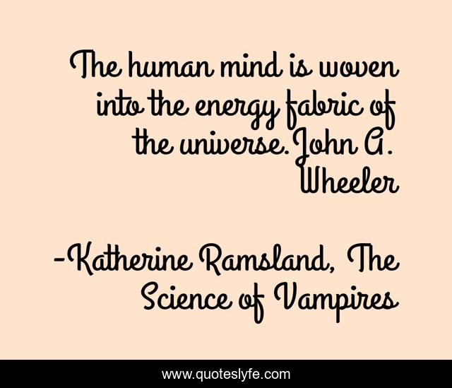 This page presents the quote "The human mind is woven into the energy fabric of the universe.John A. Wheeler". Author of this quote is Katherine Ramsland, The Science of Vampires. This quote is about physics, energy-of-the-universe,.