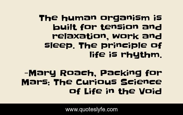 This page presents the quote "The human organism is built for tension and relaxation, work and sleep. The principle of life is rhythm.". Author of this quote is Mary Roach, Packing for Mars: The Curious Science of Life in the Void. .