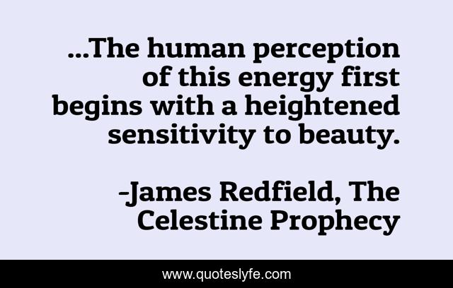 This page presents the quote "...The human perception of this energy first begins with a heightened sensitivity to beauty.". Author of this quote is James Redfield, The Celestine Prophecy. .
