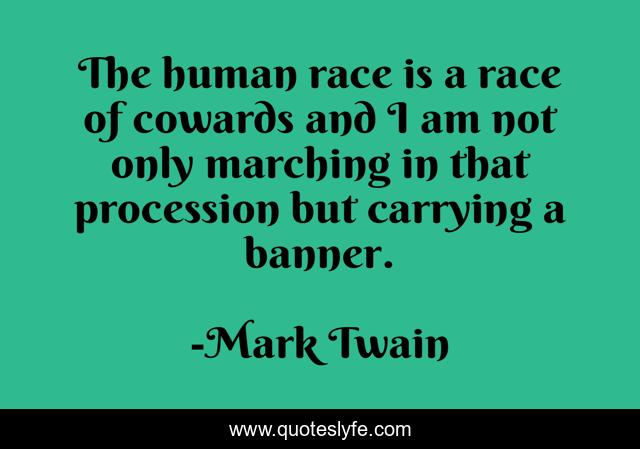 This page presents the quote "The human race is a race of cowards and I am not only marching in that procession but carrying a banner.". Author of this quote is Mark Twain. .