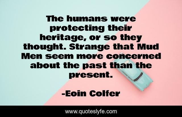 This page presents the quote "The humans were protecting their heritage, or so they thought. Strange that Mud Men seem more concerned about the past than the present.". Author of this quote is Eoin Colfer. This quote is about enthusiasm, artemis-fowl, thought-provoking, inspirational,.