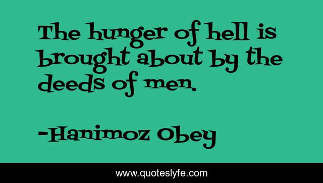This page presents the quote "The hunger of hell is brought about by the deeds of men.". Author of this quote is Hanimoz Obey. This quote is about hell, men, deeds, hunger,.