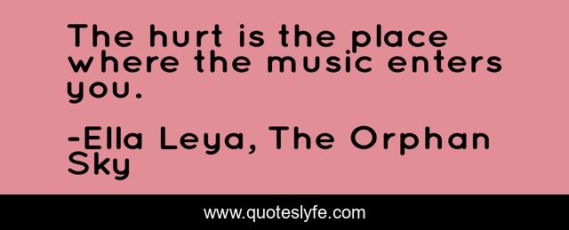 This page presents the quote "The hurt is the place where the music enters you.". Author of this quote is Ella Leya, The Orphan Sky. This quote is about music, soul, hurt,.