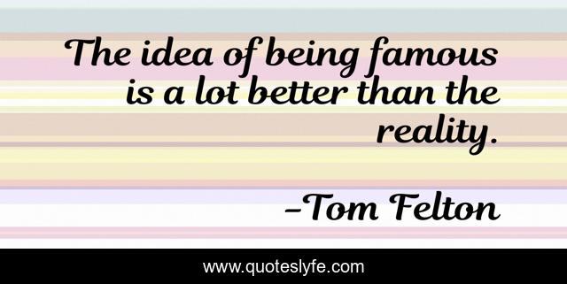 This page presents the quote "The idea of being famous is a lot better than the reality.". Author of this quote is Tom Felton. This quote is about better, idea, reality,.