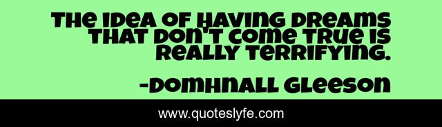 This page presents the quote "The idea of having dreams that don't come true is really terrifying.". Author of this quote is Domhnall Gleeson. This quote is about true, come, idea,.