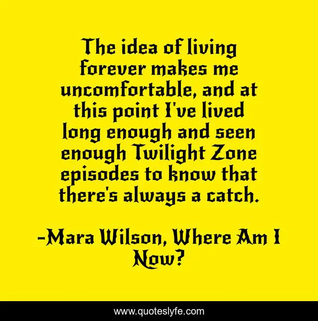 This page presents the quote "The idea of living forever makes me uncomfortable, and at this point I've lived long enough and seen enough Twilight Zone episodes to know that there's always a catch.". Author of this quote is Mara Wilson, Where Am I Now?. This quote is about living-forever, life-lessons,.