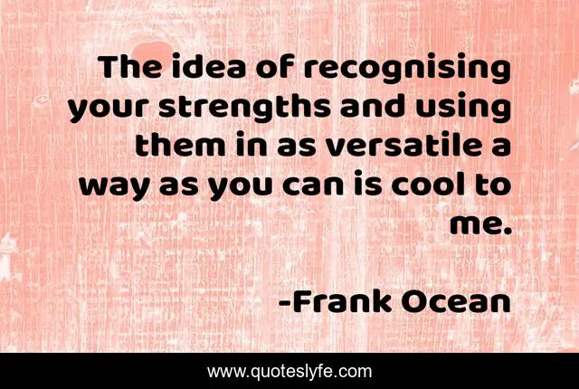 This page presents the quote "The idea of recognising your strengths and using them in as versatile a way as you can is cool to me.". Author of this quote is Frank Ocean. This quote is about me, idea,.