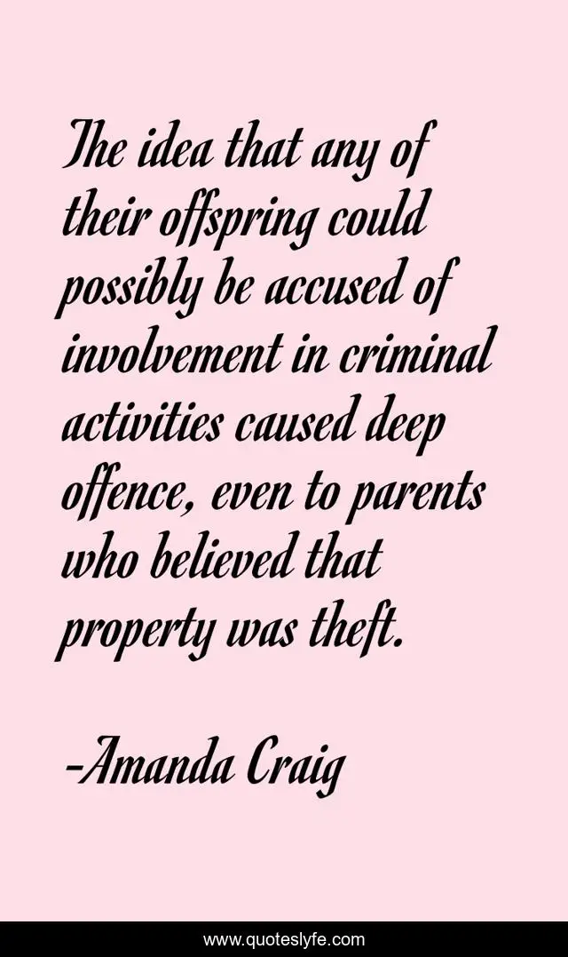 This page presents the quote "The idea that any of their offspring could possibly be accused of involvement in criminal activities caused deep offence, even to parents who believed that property was theft.". Author of this quote is Amanda Craig. This quote is about parents-and-children, parental-responsibility, crime,.