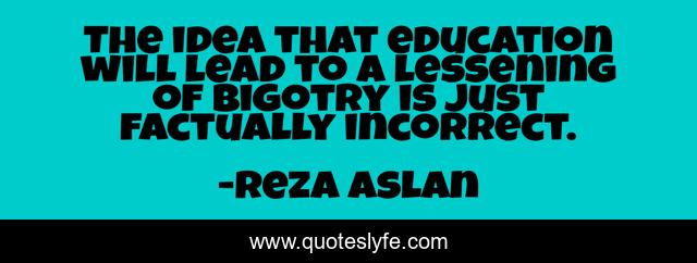 This page presents the quote "The idea that education will lead to a lessening of bigotry is just factually incorrect.". Author of this quote is Reza Aslan. This quote is about idea, lead,.